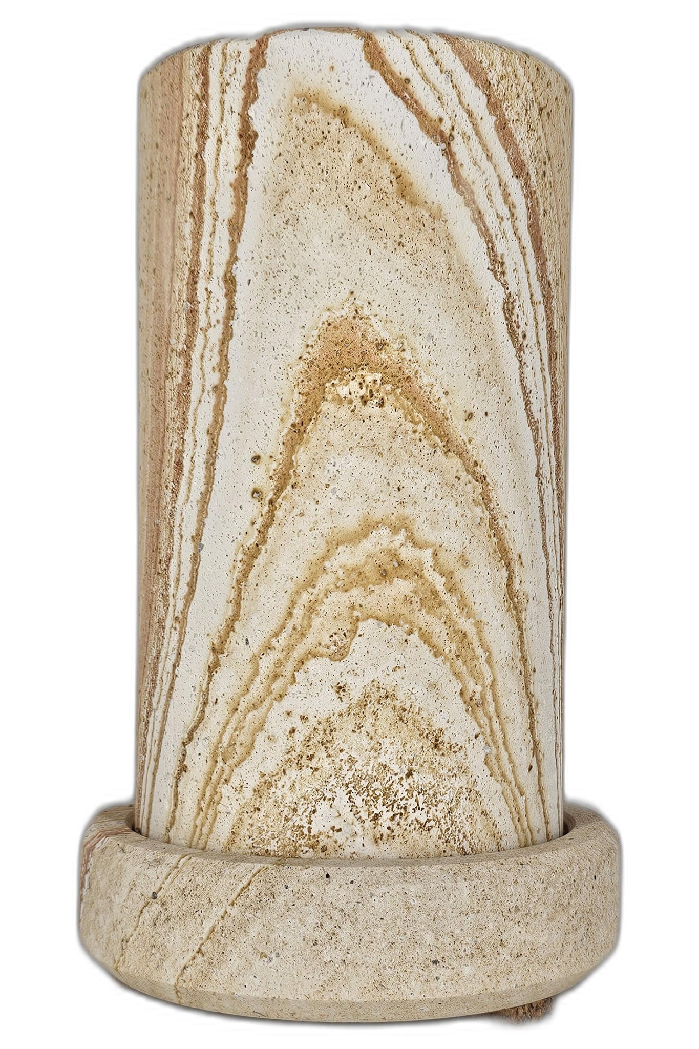 Dieser Coolkeeper besteht zur Gänze aus Sandstein. Seine Besonderheit ist der Roteinschlag in vertikalem Verlauf der auf seltene Eisensulfitrückstände zurückzuführen ist.