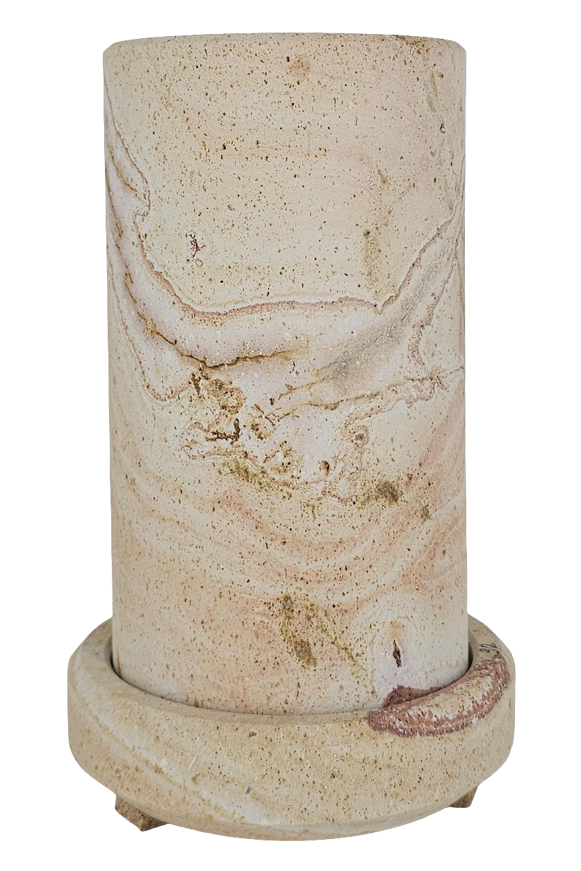 Dieser Coolkeeper besteht zur Gänze aus Sandstein. Seine Besonderheit ist der Roteinschlag in vertikalem Verlauf, der auf seltene Eisensulfitrückstände zurückzuführen ist.