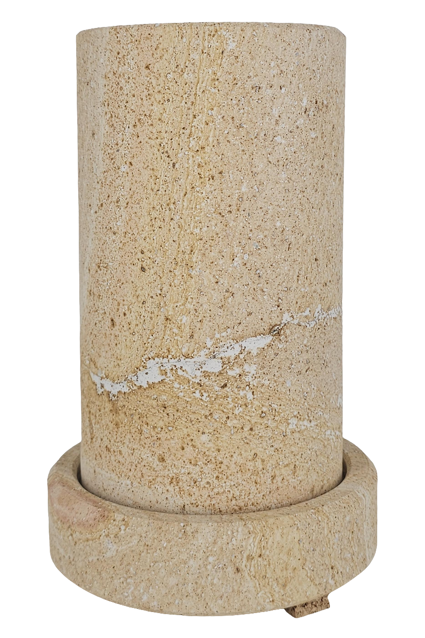 Dieser Coolkeeper besteht zur Gänze aus Sandstein. Seine Besonderheit ist der Roteinschlag in vertikalem Verlauf, der auf seltene Eisensulfitrückstände zurückzuführen ist.
