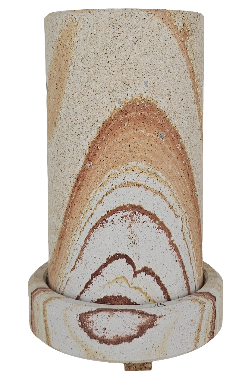 Dieser Coolkeeper besteht zur Gänze aus Sandstein. Seine Besonderheit ist der Roteinschlag in vertikalem Verlauf, der auf seltene Eisensulfitrückstände zurückzuführen ist.