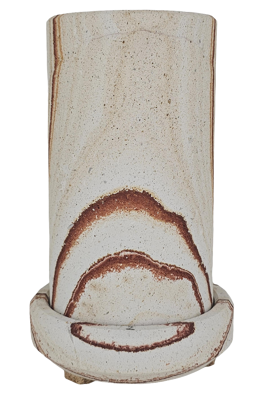 Dieser Coolkeeper besteht zur Gänze aus Sandstein. Seine Besonderheit ist der Roteinschlag in vertikalem Verlauf, der auf seltene Eisensulfitrückstände zurückzuführen ist.