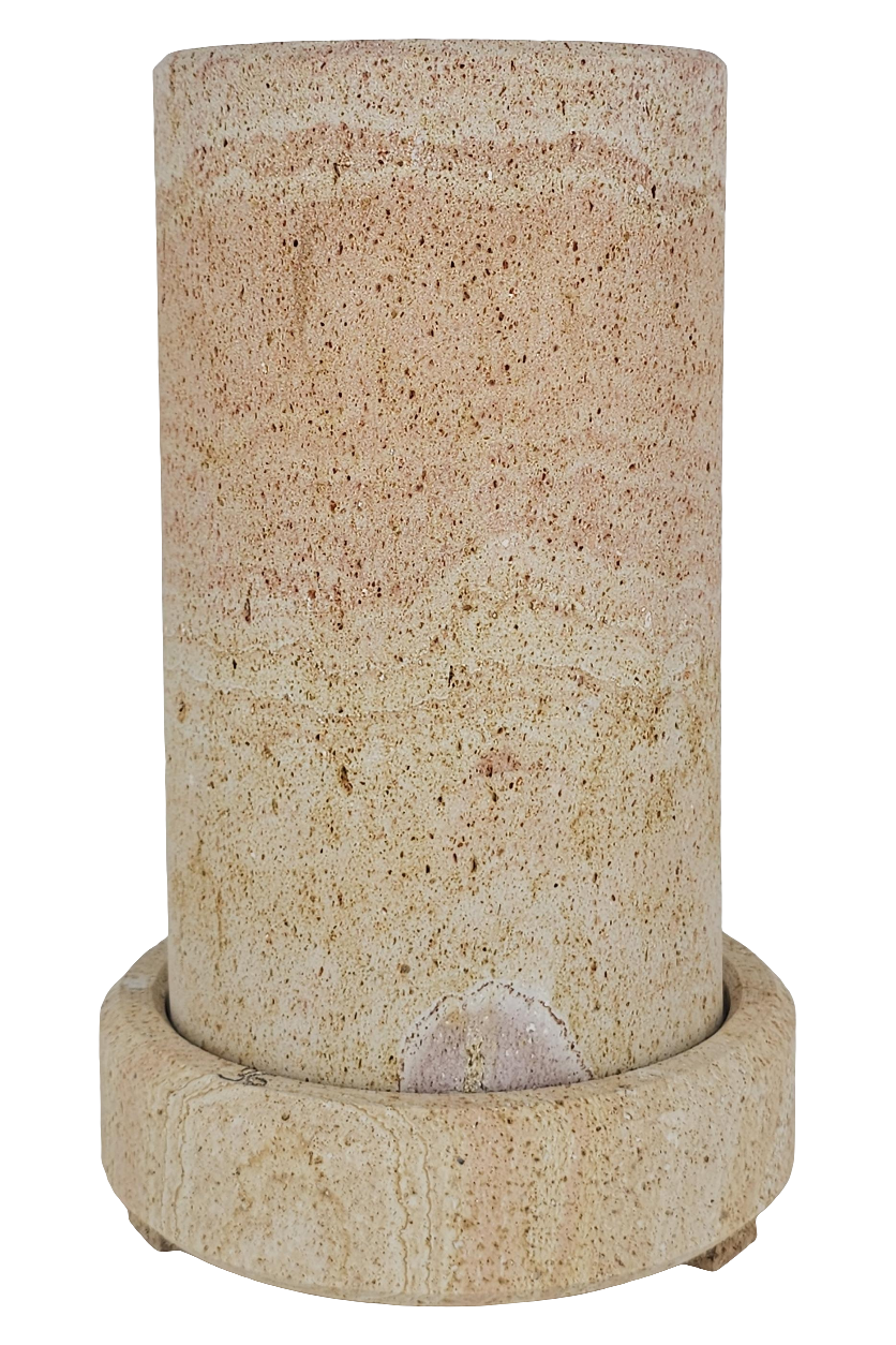 Dieser Coolkeeper besteht zur Gänze aus Sandstein. Seine Besonderheit ist der Roteinschlag in vertikalem Verlauf, der auf seltene Eisensulfitrückstände zurückzuführen ist.