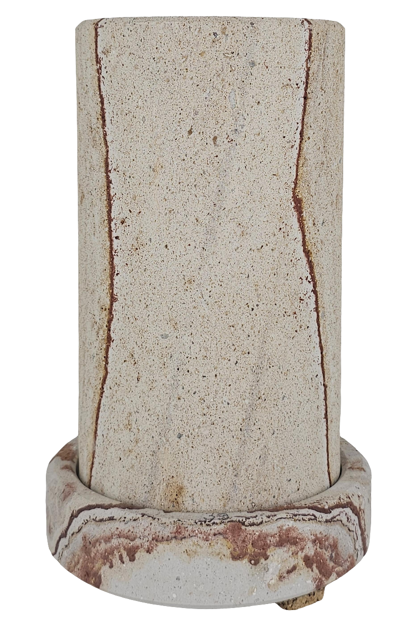 Dieser Coolkeeper besteht zur Gänze aus Sandstein. Seine Besonderheit ist der Roteinschlag in vertikalem Verlauf, der auf seltene Eisensulfitrückstände zurückzuführen ist.