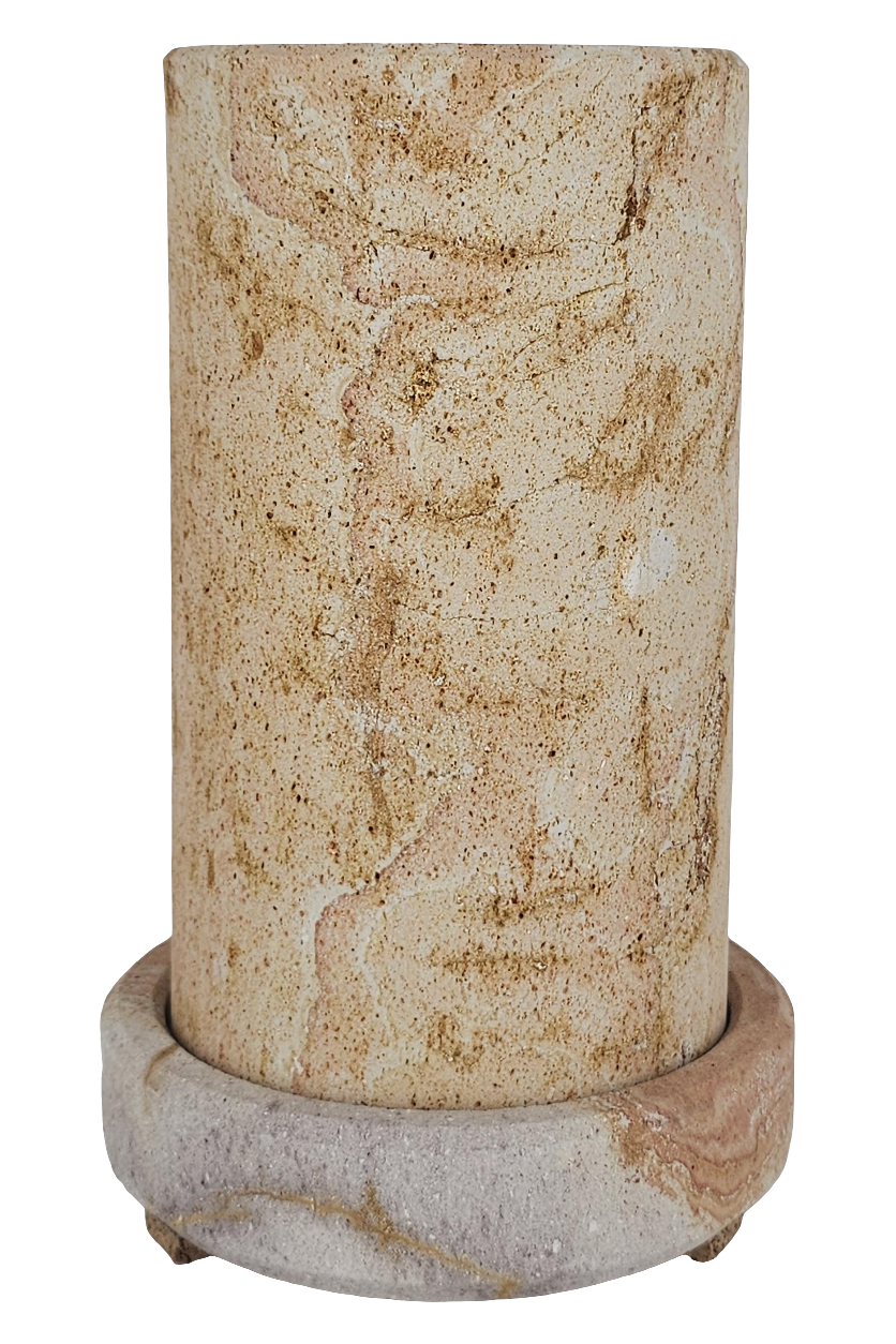 Dieser Coolkeeper besteht zur Gänze aus Sandstein. Seine Besonderheit ist der Roteinschlag in vertikalem Verlauf, der auf seltene Eisensulfitrückstände zurückzuführen ist.