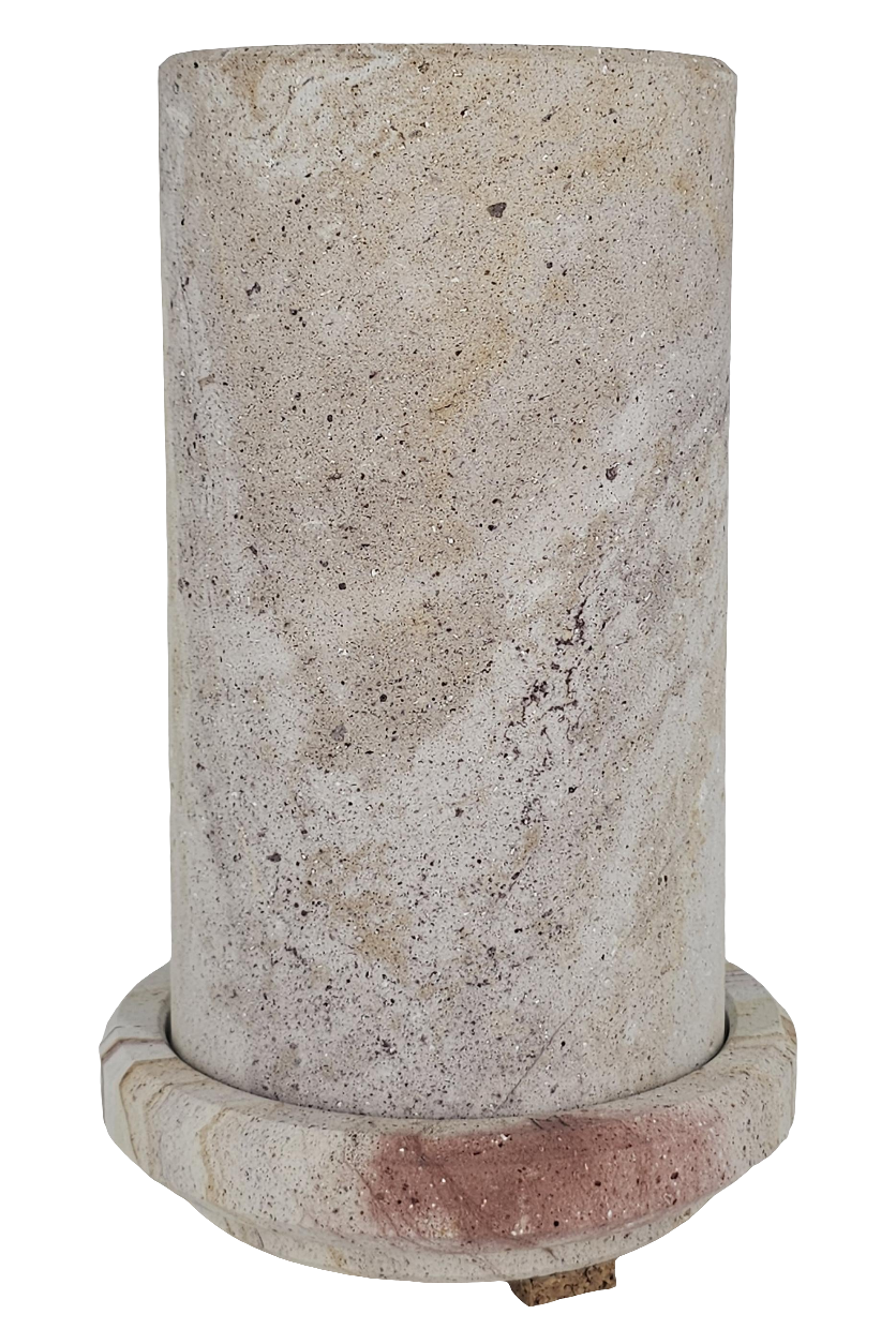 Dieser Coolkeeper besteht zur Gänze aus Sandstein. Seine Besonderheit ist der Roteinschlag in vertikalem Verlauf, der auf seltene Eisensulfitrückstände zurückzuführen ist.