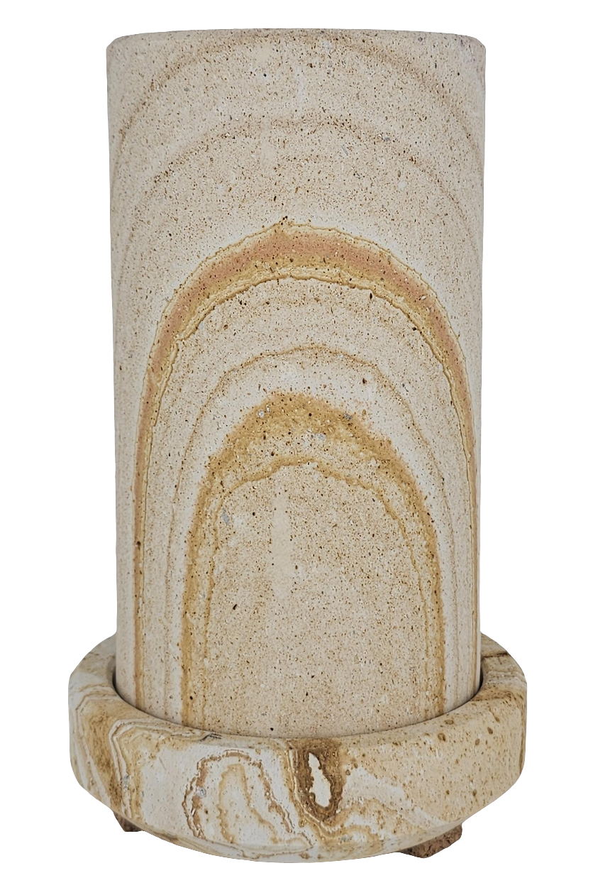 Dieser Coolkeeper besteht zur Gänze aus Sandstein. Seine Besonderheit ist der Roteinschlag in vertikalem Verlauf, der auf seltene Eisensulfitrückstände zurückzuführen ist.