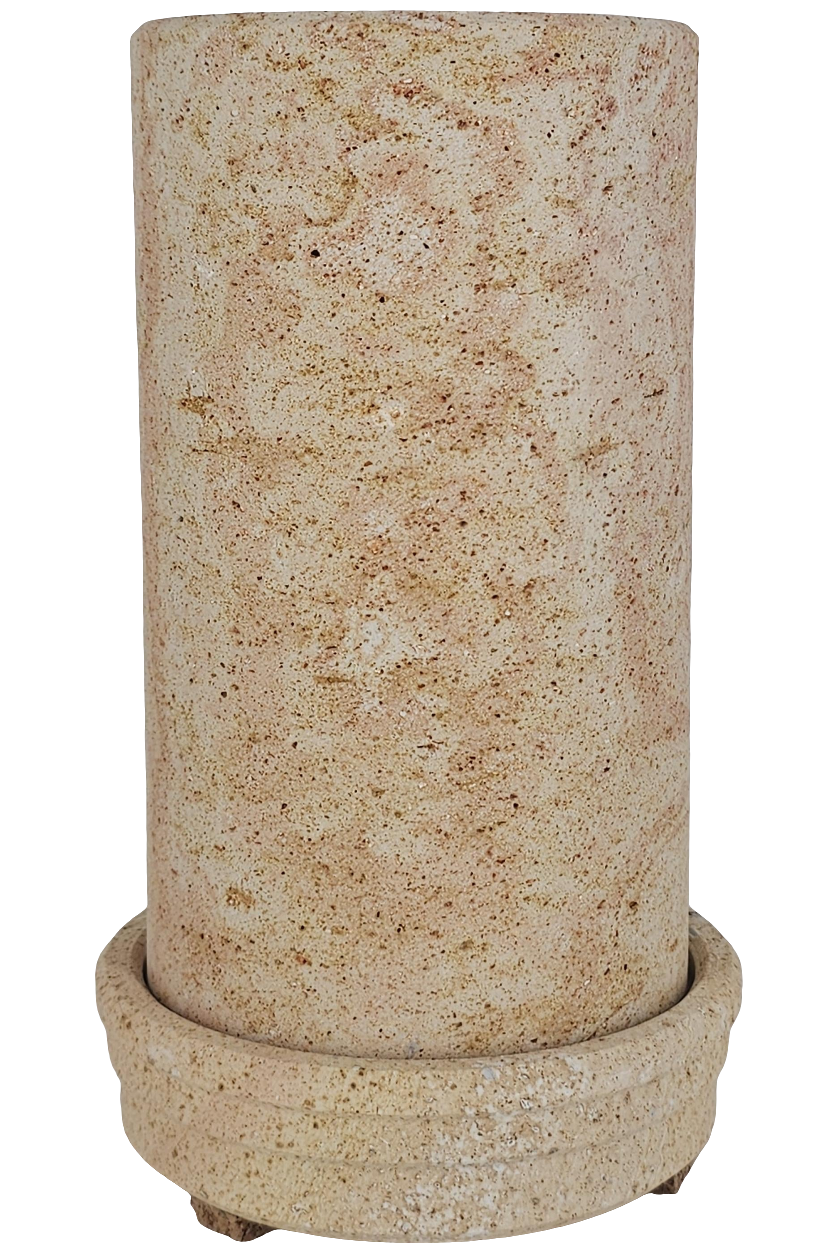 Dieser Coolkeeper besteht zur Gänze aus Sandstein. Seine Besonderheit ist der Roteinschlag in vertikalem Verlauf, der auf seltene Eisensulfitrückstände zurückzuführen ist.