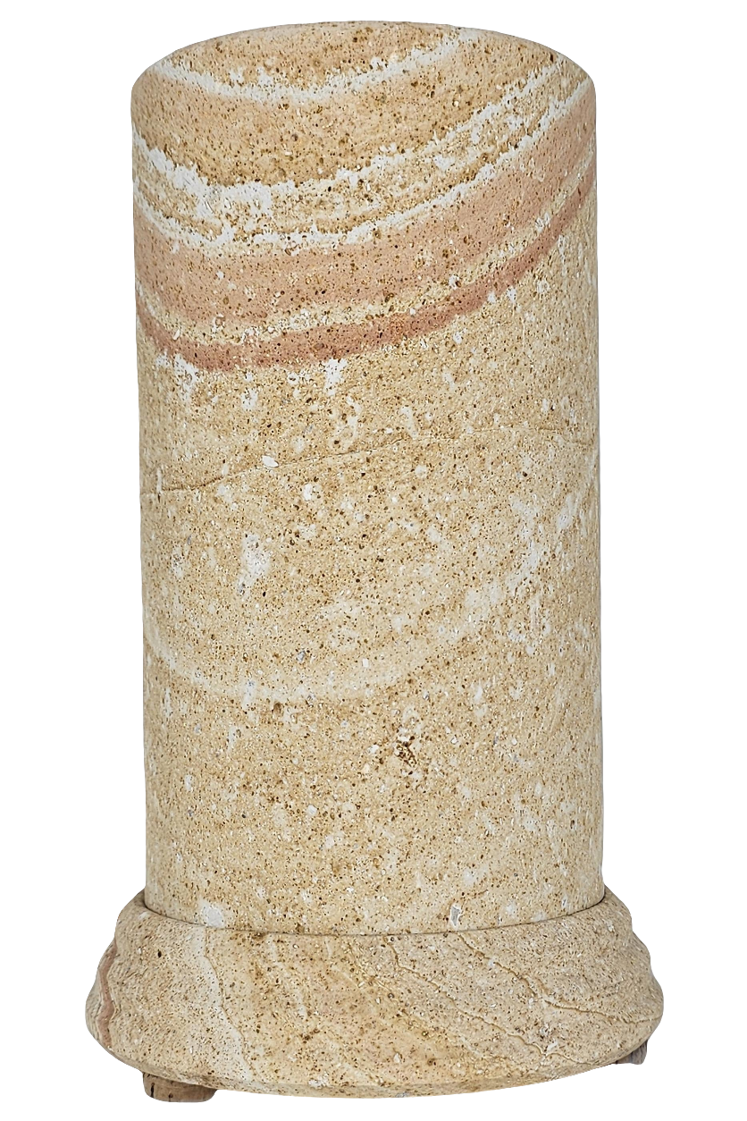 Dieser Coolkeeper besteht zur Gänze aus Sandstein. Seine Besonderheit ist der Roteinschlag in vertikalem Verlauf der auf seltene Eisensulfitrückstände zurückzuführen ist.