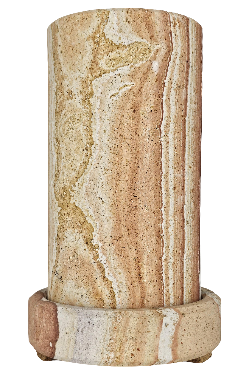 Dieser Coolkeeper besteht zur Gänze aus Sandstein. Seine Besonderheit ist der Roteinschlag in vertikalem Verlauf, der auf seltene Eisensulfitrückstände zurückzuführen ist.