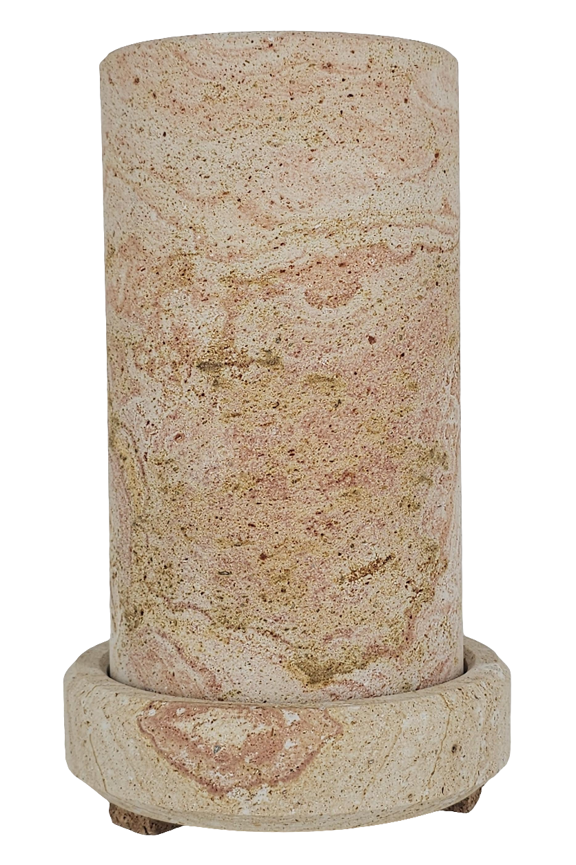 Dieser Coolkeeper besteht zur Gänze aus Sandstein. Seine Besonderheit ist der Roteinschlag in vertikalem Verlauf, der auf seltene Eisensulfitrückstände zurückzuführen ist.