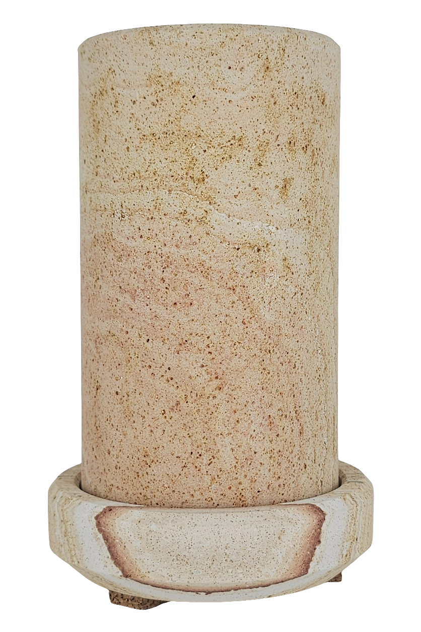 Dieser Coolkeeper besteht zur Gänze aus Sandstein. Seine Besonderheit ist der Roteinschlag in vertikalem Verlauf, der auf seltene Eisensulfitrückstände zurückzuführen ist.