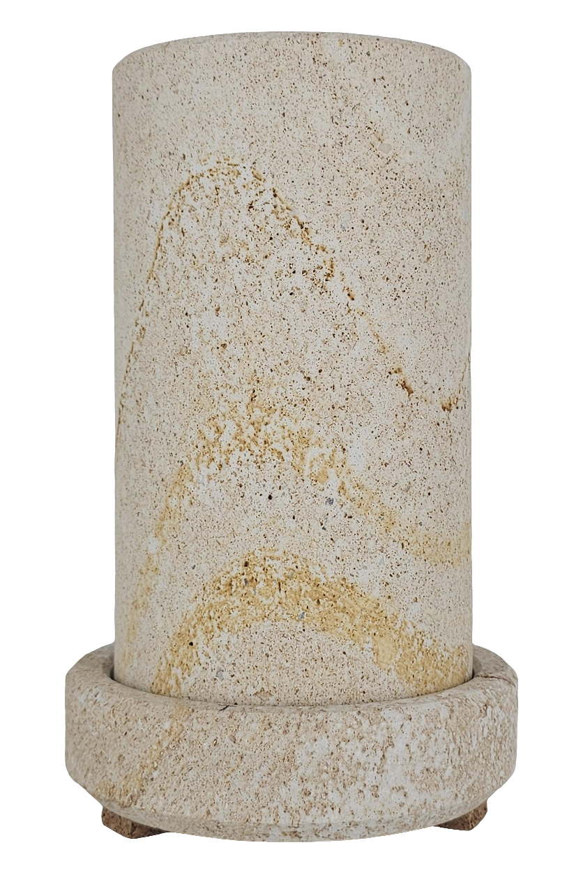 Dieser Coolkeeper besteht zur Gänze aus Sandstein. Seine Besonderheit ist der Roteinschlag in vertikalem Verlauf, der auf seltene Eisensulfitrückstände zurückzuführen ist.