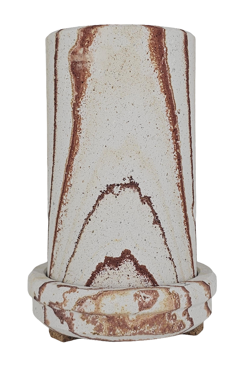 Dieser Coolkeeper besteht zur Gänze aus Sandstein. Seine Besonderheit ist der Roteinschlag in vertikalem Verlauf, der auf seltene Eisensulfitrückstände zurückzuführen ist.