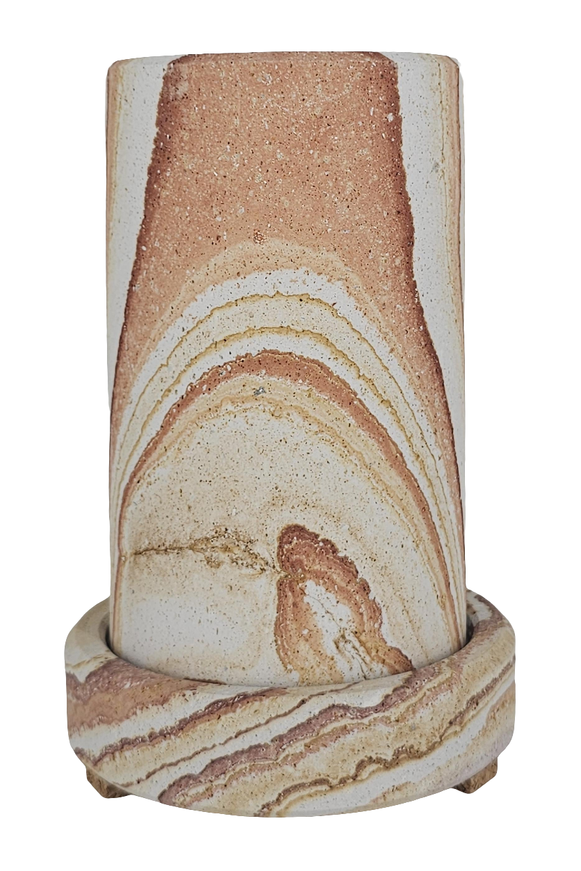Dieser Coolkeeper besteht zur Gänze aus Sandstein. Seine Besonderheit ist der Roteinschlag in vertikalem Verlauf, der auf seltene Eisensulfitrückstände zurückzuführen ist.