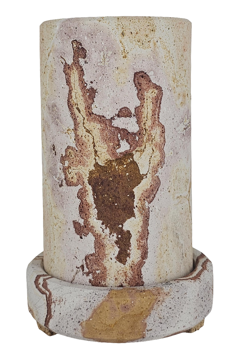 Dieser Coolkeeper besteht zur Gänze aus Sandstein. Seine Besonderheit ist der Roteinschlag in vertikalem Verlauf, der auf seltene Eisensulfitrückstände zurückzuführen ist.