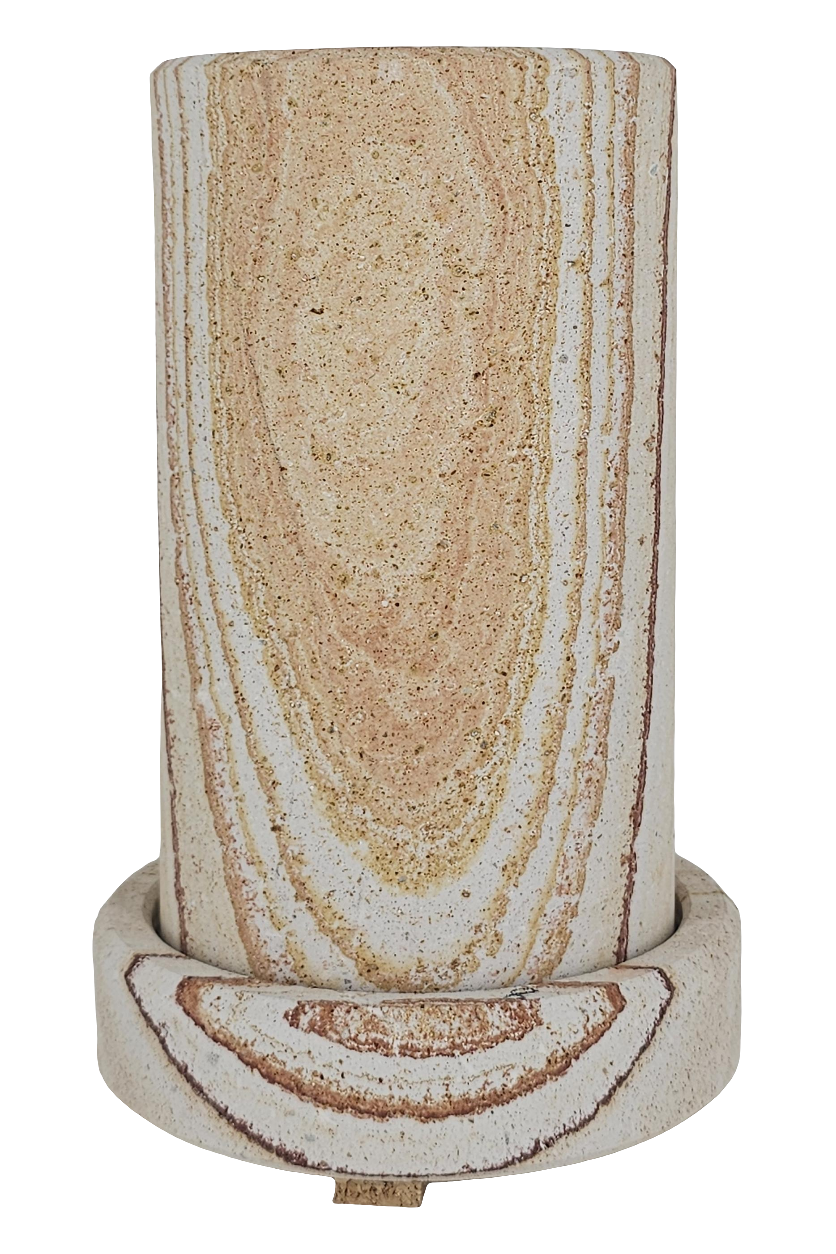 Dieser Coolkeeper besteht zur Gänze aus Sandstein. Seine Besonderheit ist der Roteinschlag in vertikalem Verlauf, der auf seltene Eisensulfitrückstände zurückzuführen ist.
