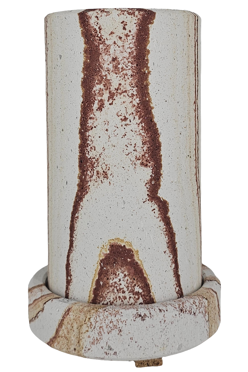 Dieser Coolkeeper besteht zur Gänze aus Sandstein. Seine Besonderheit ist der Roteinschlag in vertikalem Verlauf, der auf seltene Eisensulfitrückstände zurückzuführen ist.