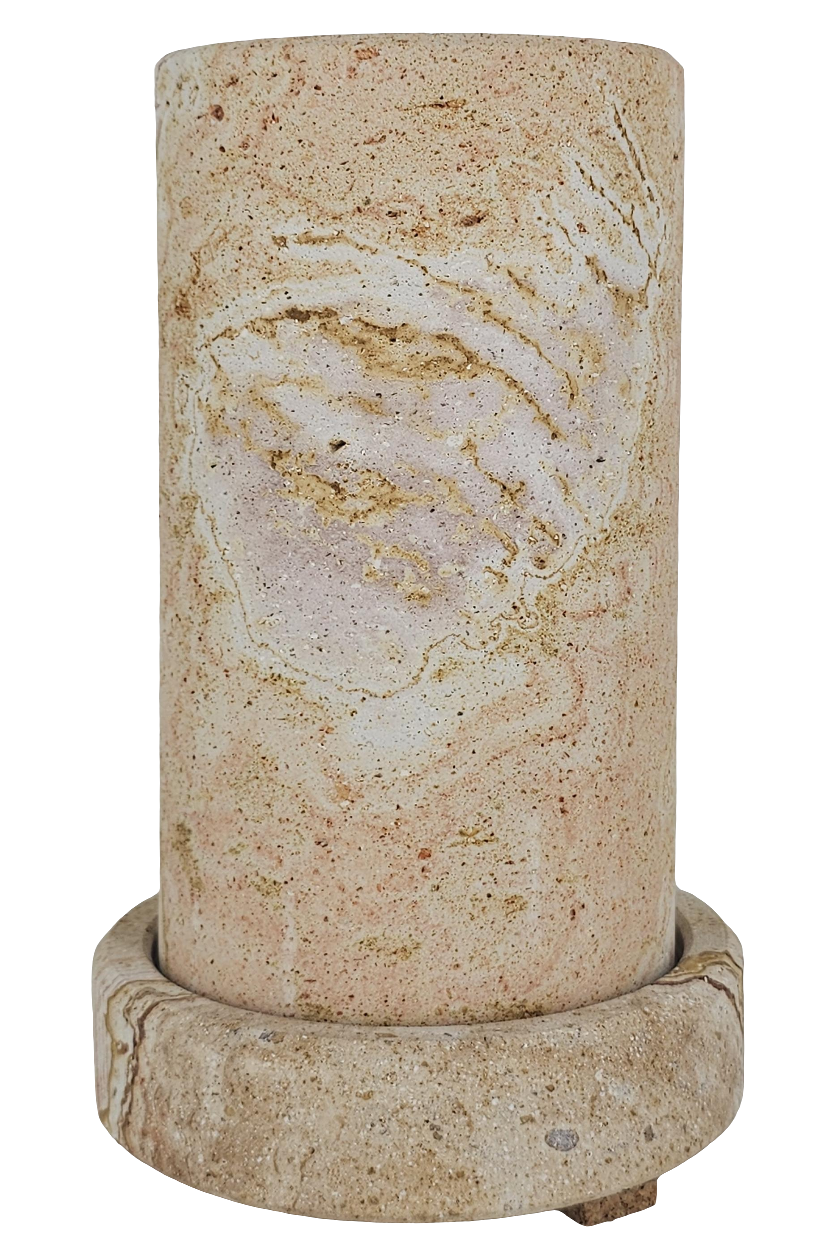 Dieser Coolkeeper besteht zur Gänze aus Sandstein. Seine Besonderheit ist der Roteinschlag in vertikalem Verlauf, der auf seltene Eisensulfitrückstände zurückzuführen ist.